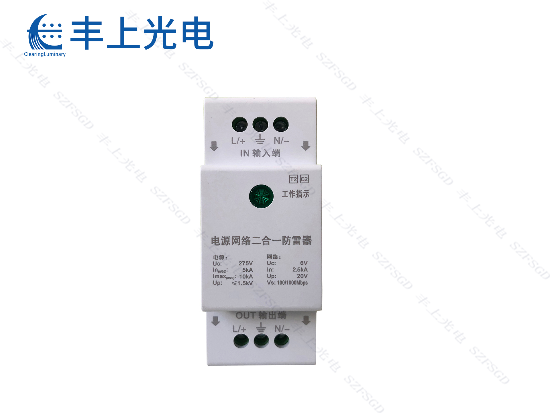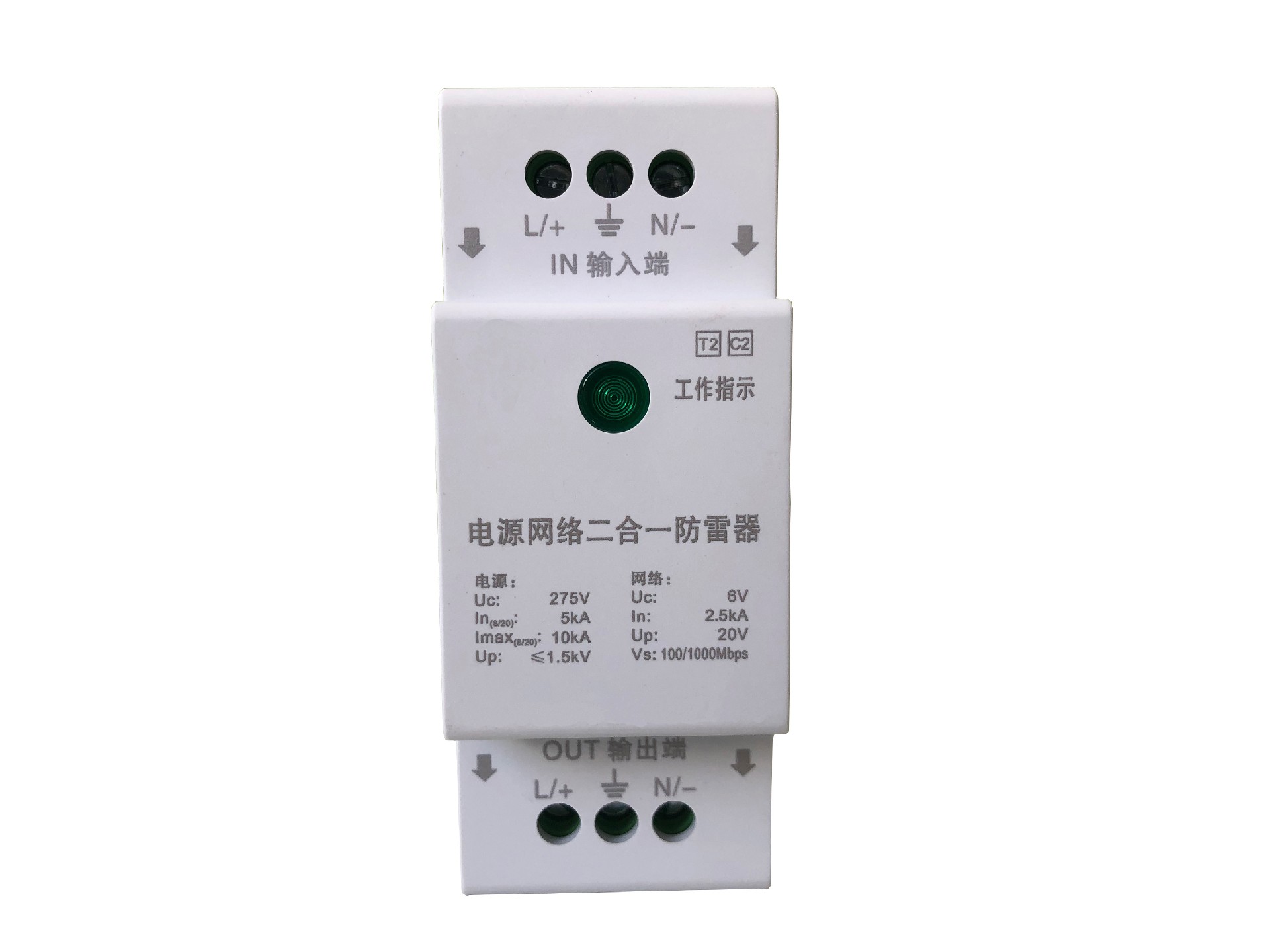 電源網絡二合一防雷器是根據IEC防雷要求和監控系統攝像機的具體特點量身打造的專用防雷器,保護攝像機電源、視頻等線路免受雷電電磁脈沖、感應過電壓、操作過電壓的影響,廣泛應用于公共治安、交通監控等領域。該系列產品具有集成度高、插損低、殘壓低、方便安裝等特點,具有良好的防雷效果。